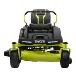Easily mow your large yard with this Ryobi 48V zero turn riding lawn mower. Instead of using gas, this mower is powered with 100 Ah lead acid batteries with two and half hours of run time. This quiet mower only emits 70 dB of sound so you dont disturb your neighbors. Premium features like LED headlights, USB phone charger and cruise control make this a top-of-the-line choice. The 42 in. two blade deck has 12 positions and the rear access charging port makes charging this mower simple.
