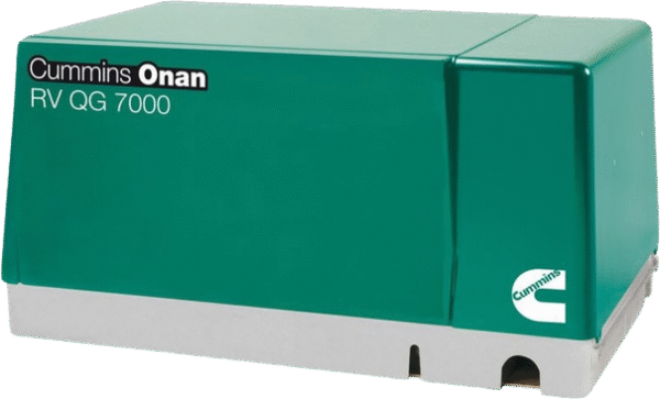Cummins Onan QG EFI Gasoline powered 7000 watt RV generator. Includes electronic fuel injection for maximum performance and low fuel consumption. Runs two air conditioners with power to spare. Lightweight, compact, and easy to install. Easy maintenance with single-side service.