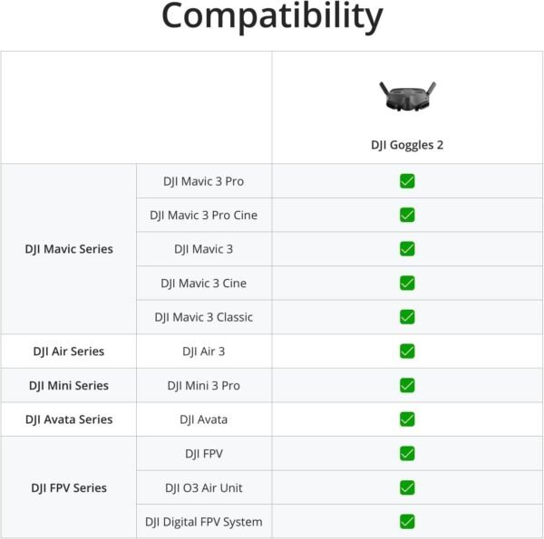 Skyward Exploration: Delve into spectacular sky-high views as if you’re flying with your drone. Compact and Travel-Friendly: DJI Goggles 2 are effortlessly transportable. The interchangeable foam padding ensures a comfortable, light-tight fit without undue pressure. Vivid Visuals: Dual Micro-OLED screens offer rich, natural colors. A dedicated video processor enhances smoothness and sharpness for outstanding visual clarity. Customizable Vision: Adjust the focus from +2.0 to -8.0 on Goggles 2, and lock your settings in place for future flights, making them suitable for users without glasses. Entertainment Beyond Flying: Wi-fi connectivity allows movie streaming directly into your Goggles. Experience synchronized audio for an immersive home cinema experience. Steady, Fast Connection: Enjoy real-time flight with minimal latency of just 30 ms. DJI Goggles 2 dynamically switch between 2.4GHz and 5.8GHz bands for a consistently smooth visual experience. Broad Compatibility: Compatible with a variety of drones including DJI Air 3, DJI Avata, DJI Mini 3 Pro, DJI Mavic 3 series, and more, enhancing their functionality.