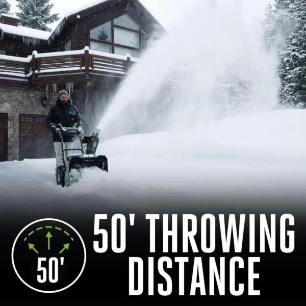 The EGO POWER+ Cordless 2-Stage Snow Blower exceeds the power and performance of gas-powered snow blowers without the noise, fuss, and fumes. Featuring Peak Power technology, this cordless electric snow blower combines the power of any two EGO 56V ARC Lithium batteries to tackle the toughest snow conditions and what the snowplow leaves behind with ease—and throws it up to 50 feet. Its 24-inch clearing width and 20-inch intake height handles even the deepest snow, and its variable-speed auger and 200-degree chute direction give you complete control to throw snow where you need it. Get the job done easily with variable-speed self-propelled forward and reverse directions along with four LED lights for added visibility in early morning or evening. Clear 8 inches of snow from a 18-car driveway with the two included 7.5Ah batteries. Experience Power Beyond Belief with the EGO POWER+ 2-Stage Cordless Snow Blower and the entire EGO POWER+ lineup.Find the SNOW BLOWER 2-STAG 24W at Ace.