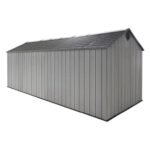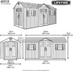 - Welcome to the next generation of Lifetime storage sheds! Introducing the Lifetime 15×8 dual entry shed with the great looking wood textured rough cut design. With all the superior materials and qualities Lifetime sheds are known for, this shed will be sure to serve you for many years. This building is constructed with dual-wall high-density polyethylene (HDPE) panels combined with five heavy duty Steel A-frame trusses to give it unmatched stregnth against the toughest elements. Panels are UV protected to give you unfading great looks and protect from cracking. The shed is stain resistant and never needs painting! Your no maintenance storage solution. Inside you’ll find high impact plastic flooring with hardwood texture looks. The floor is resistant to oil and other stains and is textured for prevent slips and falls (foundation of concrete or wood decking required). You’ll be able to get organized the first day with the included shelving and wall hooks. Natural lighting from 6 included skylights, 2 windows and transom windows on the doors will help you see clearly while working inside. Two screened vents above each gable end provides fresh air and ventilation while keeping pests out. Two swing open doors give you easy access to your stored items. Doors are pad lockable for security (pad locks not included). This extra large shed is a great option for storing riding mowers, atv’s, motorcycles, bicycles, kayaks, toys and more! You’re search is over, if this shed meets your needs and budget you are in the right place!
