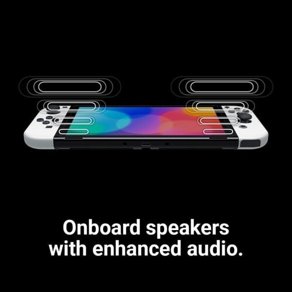 Pick it up and play with the Joy-Con controllers attached. Nintendo Switch (OLED model) includes an OLED screen with a slimmer bezel. The large screen’s vivid colours and high contrast deliver a rich handheld and tabletop gaming experience, bringing games to life whether you’re racing at top speed or squaring off against enemies.